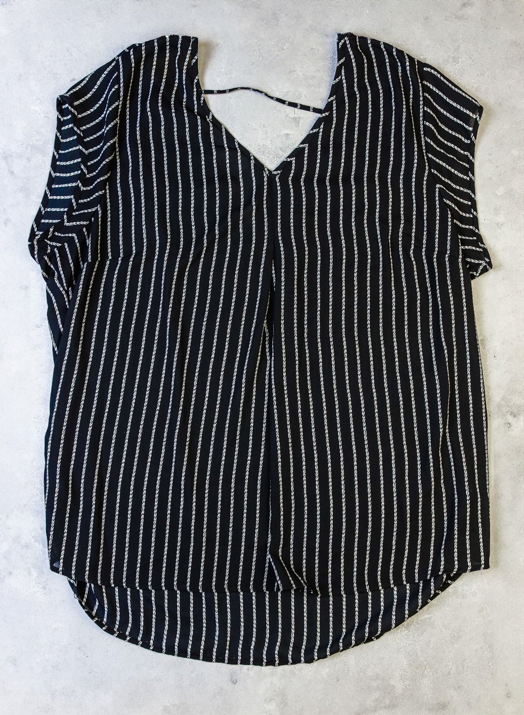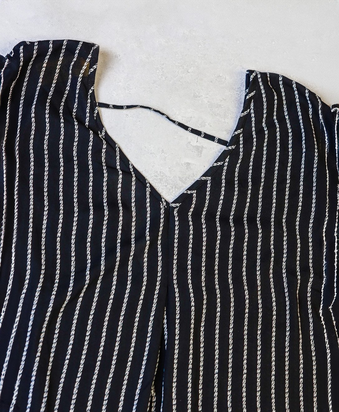 SS-BV-XXL-10 Blusa Vestir Negra con Rayas Blancas, Cuellos en V, Mangas Cortas, Size XXL