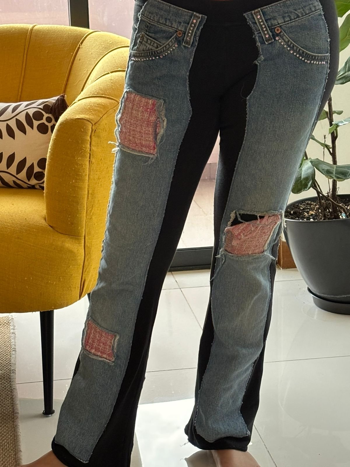 ME-PJ-S-02 PANTALONES JEANS CON APLIQUES NEGROS, SIZE SMALL