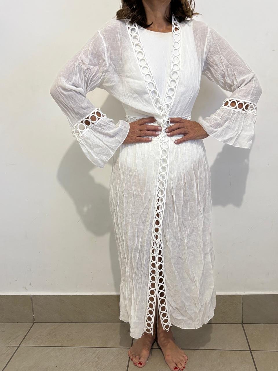 ME-RP-U-15     SALIDA DE PLAYA EN TELA CORRUGADA BLANCA CON ENCAJES, UNITALLA